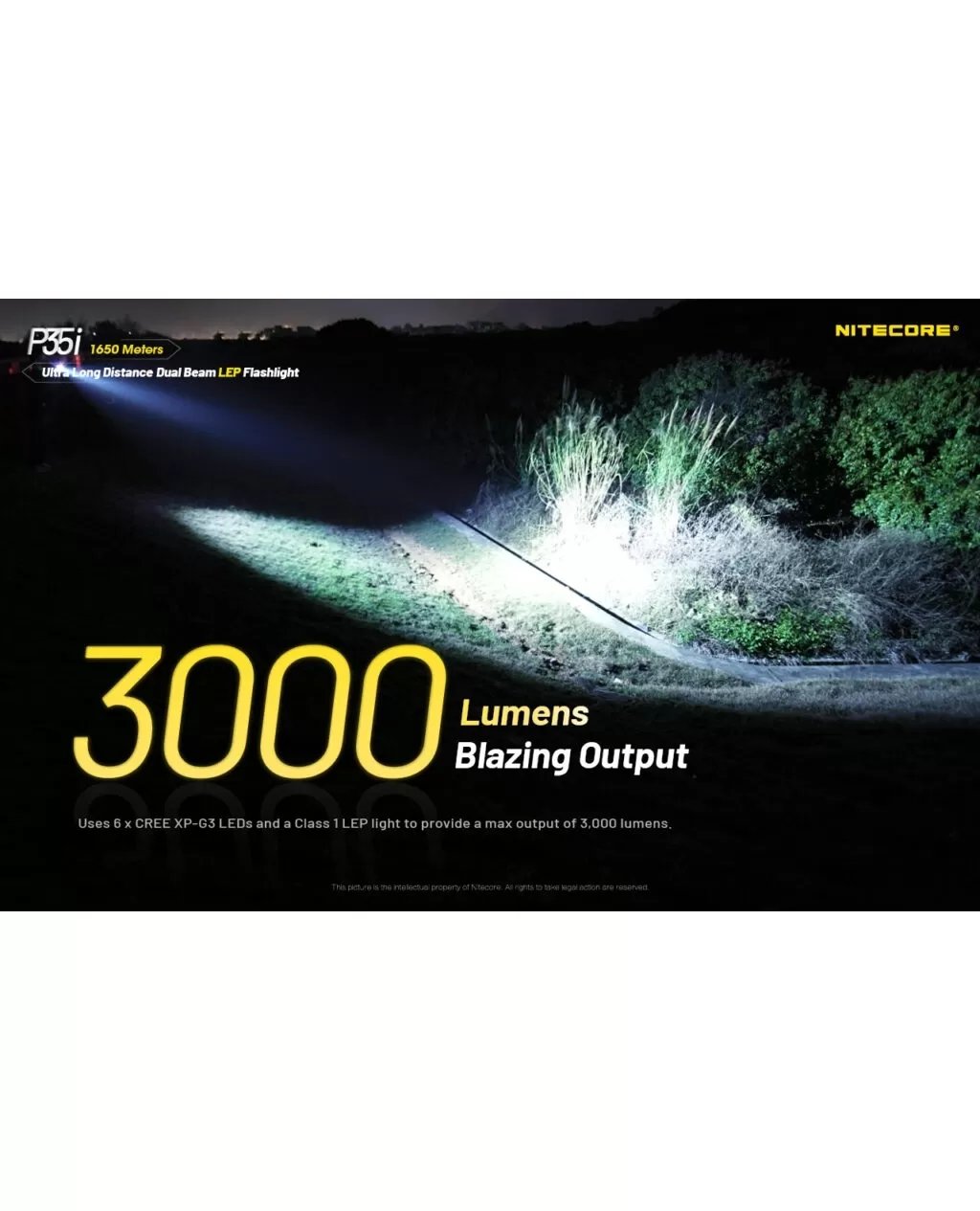 – Χρησιμοποιεί έξι (6) LED CREE XP-G3 και ένα Laser 1ης κλάσης για να παρέχει 3000 Lumens.