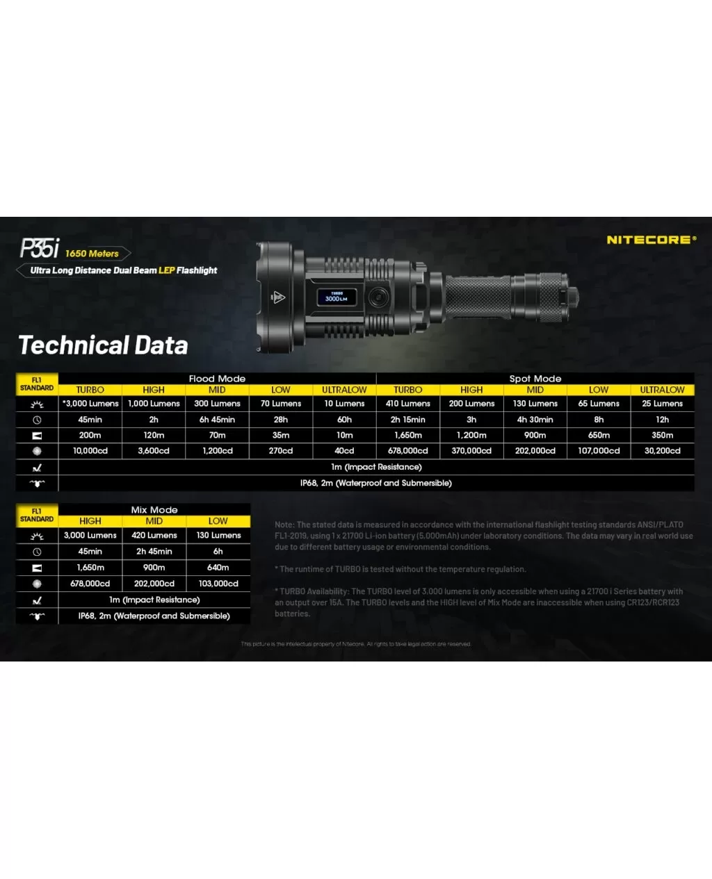 – Στη συσκευασία περιλαμβάνονται μία μπαταρία NITECORE 21700i (NL2150i / 5000mAh) και ένας απομακρυσμένος καλωδιακός διακόπτης ελέγχου RSW2i
